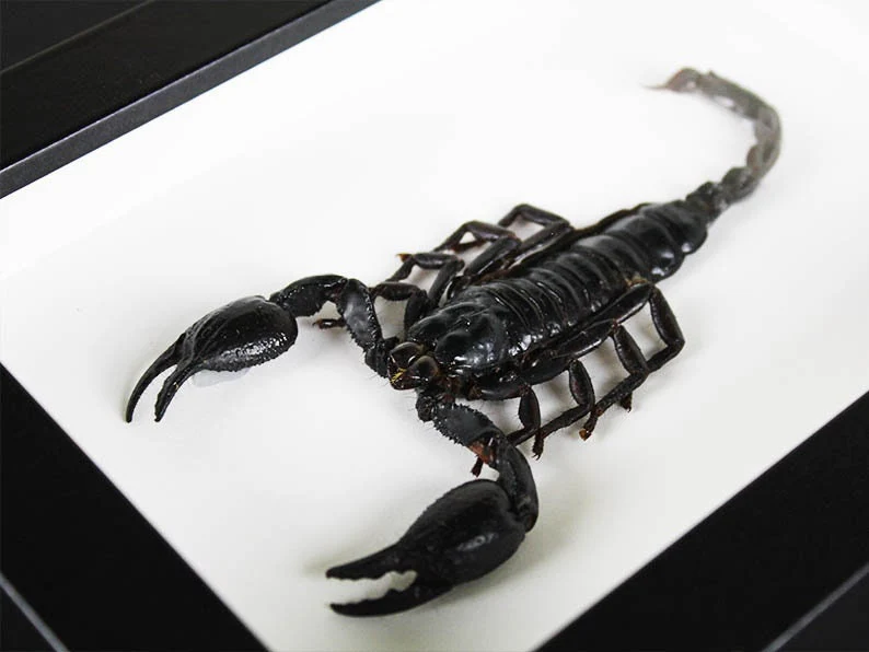 Preserved to honor its natural form, this scorpion becomes a unique work of art that inspires both awe and contemplation. It is a piece that sparks conversation not just about nature, but about the very essence of life and endurance. Let its presence be a source of hope, a testament to the idea that even in stillness, there is incredible strength.