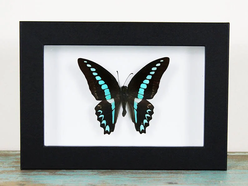 This display is more than a decorative piece; it is a story of adaptation and hope. In eastern Australia, the Blue Triangle has gracefully adapted to drier suburban gardens, a gentle reminder that we too can find beauty and create a home for ourselves even when our surroundings change. Let this elegant butterfly be a source of quiet inspiration in your space, its story encouraging you to embrace change with a hopeful heart and to find the beauty that awaits in every new environment.